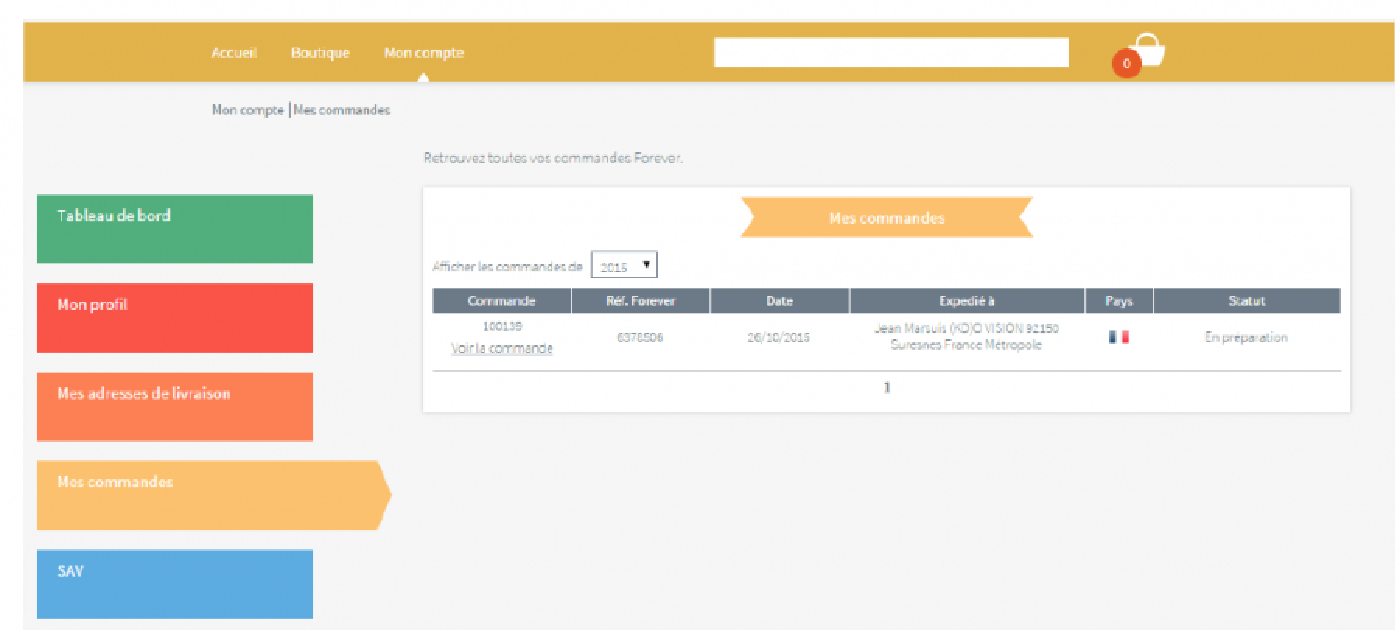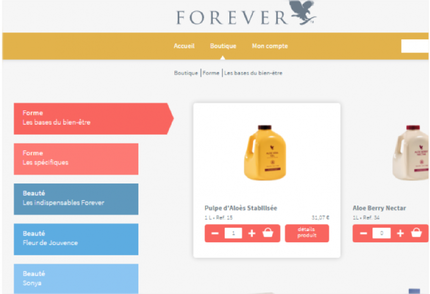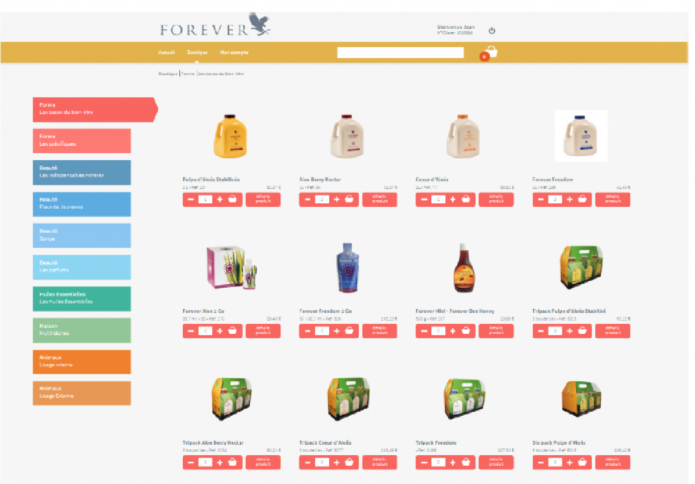 Depuis la page « boutique » vous avez accès aux produits Forever que vous pouvez commander.